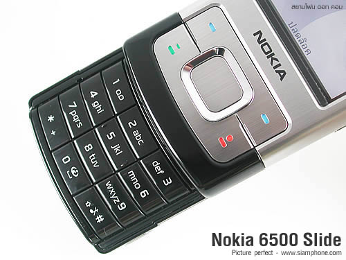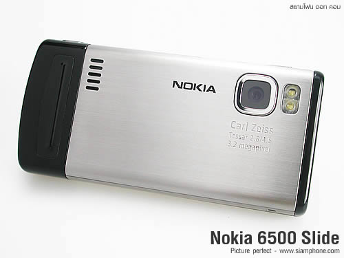 The latest 6500 Slide model mobile phone from Nokia comes with a silver and black colored casing.